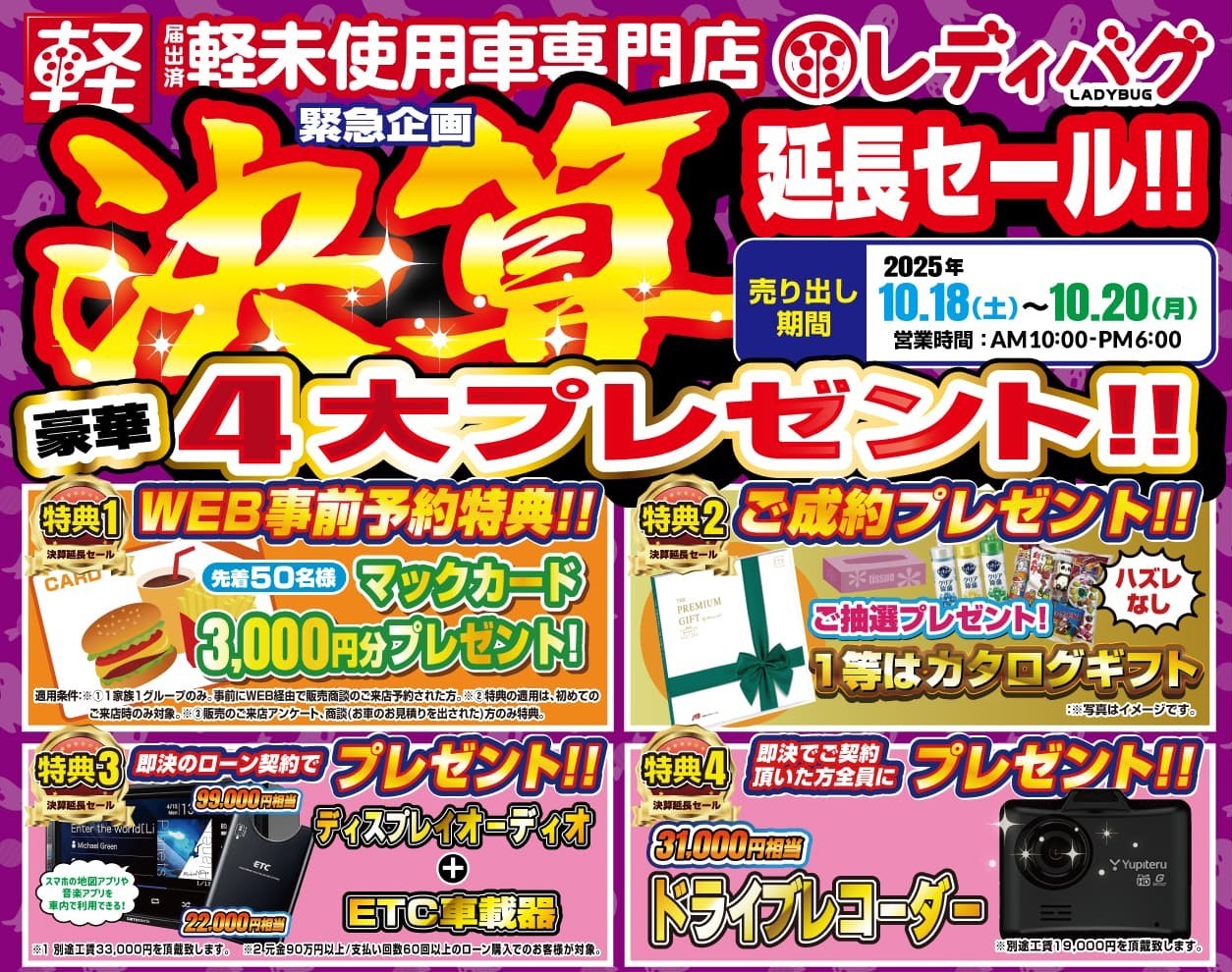 また、ご本人名義で、自走できる車輛を下取りさせて頂く場合、10,000円での下取りを保証させて頂きます。
